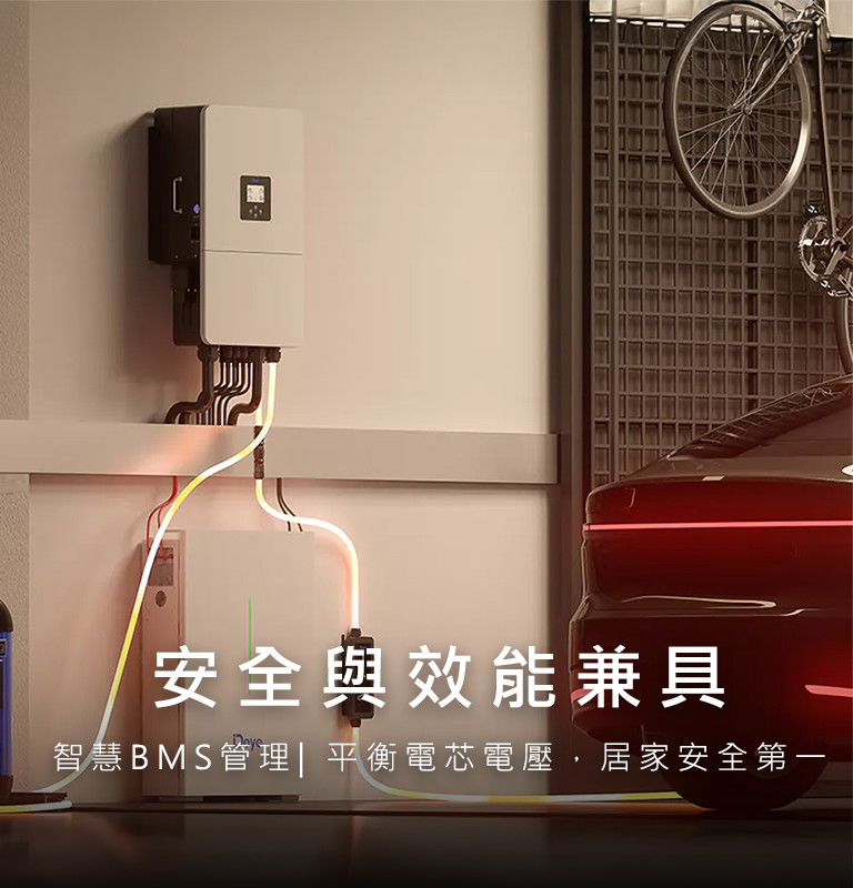 使用『磷酸鋰鐵』電池,內建先進 BMS 管理系統,主動平衡電芯電壓,延長壽命並確保居家安全。