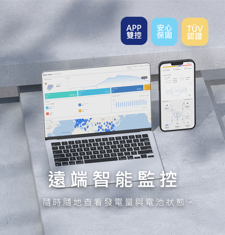 支援 Deye Cloud 與 Solarman App,隨時隨地查看發電量與電池狀態。